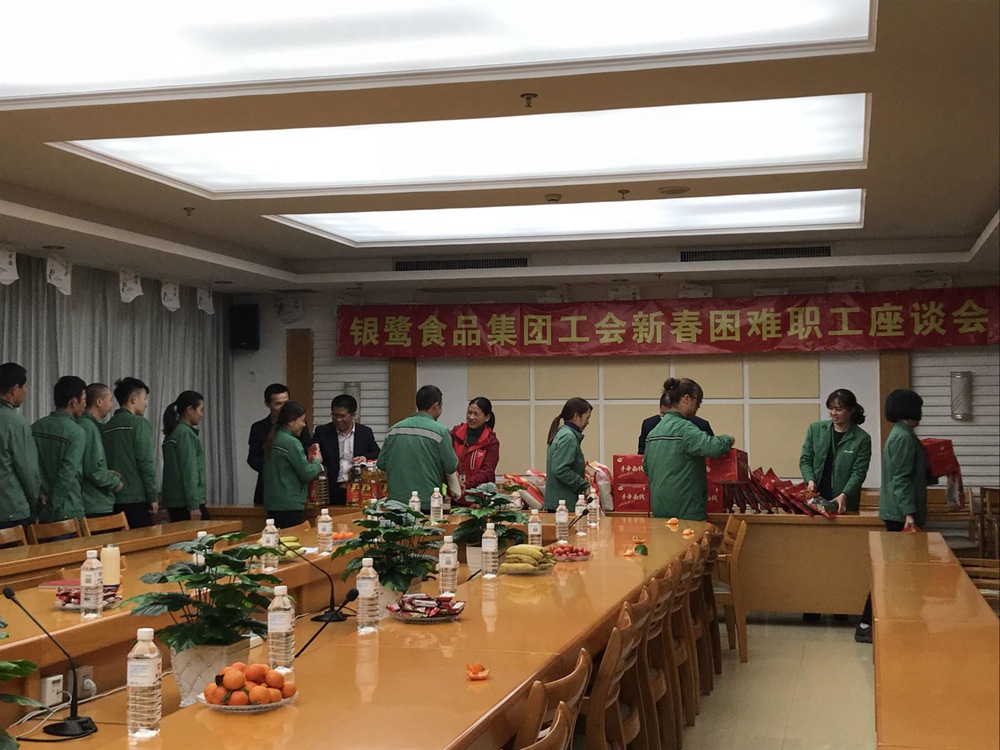 2019年1月28日(農(nóng)歷十二月廿三,俗稱小年)下午,在這特別的日子,銀鷺食品集團工會在廈門生產(chǎn)基地開展迎新春“送溫暖下基層”慰問活動。集團工會主席洪清耀、工會副主席黃海英、廈門基地總廠長肖小榮及有關(guān)分廠廠長參加慰問活動。在基地科技樓三樓會議室,集團工會代表和基地有關(guān)部門領(lǐng)導(dǎo)與來自生產(chǎn)一線的13名困難職工代表親切交流,實際了解他們的工作、子女教育以及家庭生活情況,并為他們送上新春最美好的祝福和油米等日常生活必需品及慰問金,讓他們切身感受銀鷺大家庭的溫暖。
