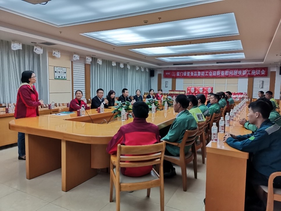2020年1月15日上午,廈門銀鷺食品集團工會委員會迎新春慰問困難職工座談會在銀鷺廈門生產基地舉行。