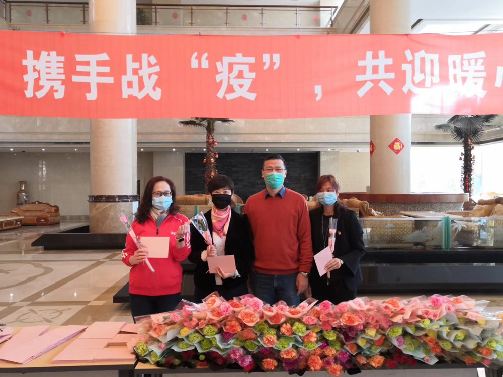 隨后總裁兼CEO孫亦農先生、首席財務官裴紅蘭女士、首席營銷官紀偉如女士、內審中心副總、銀鷺食品黨支部書記林麗霜女士為獲得一等獎的職工們送上鮮花、禮品。儀式簡單而溫馨,雖然大家都戴著口罩,但口罩擋不住她們的美麗,面對疫情,我們云擁抱、云互動,祝福是遠程的,心卻是如此貼近,這個3.8節過得比往年更有意義。