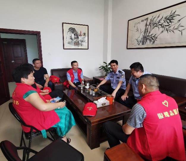 (圖為 翔安交警大隊領導與志愿者們熱烈交談)